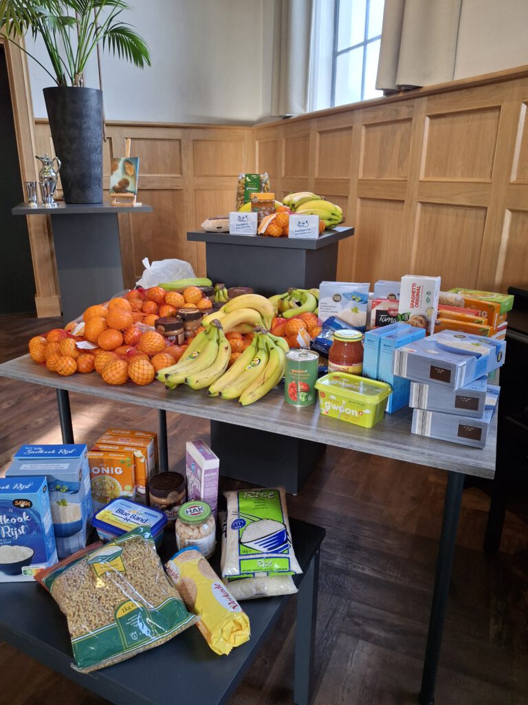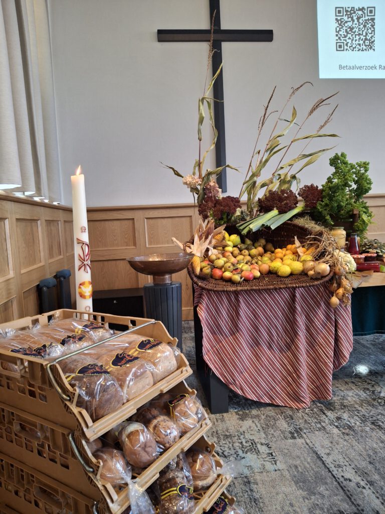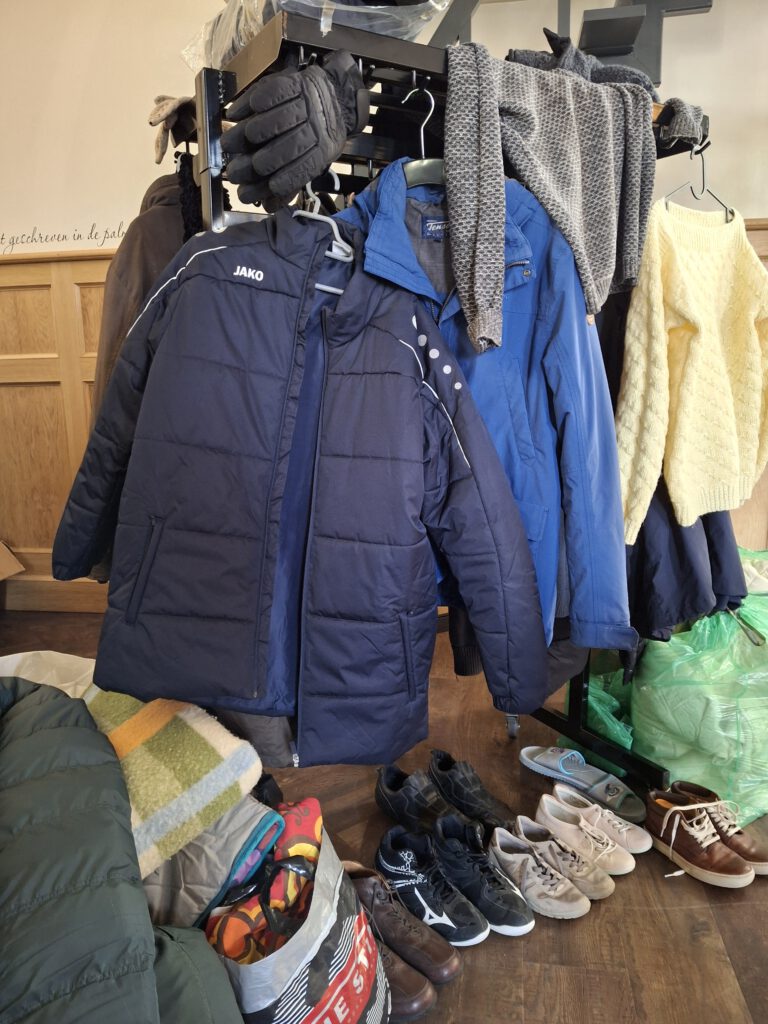 Vele mensen hebben voor de dienst van 2 november levensmiddelen meegenomen, maar ook winterjassen, schoenen etc.